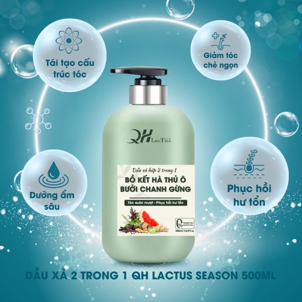 DẦU GỘI XẢ BỒ KẾT THIÊN NHIÊN QH LACTUS SEASON HÀ THỦ Ô, BƯỞI, CHANH, GỪNG 500ml